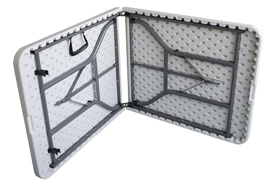 Mesa plegable a la mitad para uso en el hogar, oficina y eventos. Por ser plegable utiliza poco espacio de almacenamiento y es fácil de transportar. Acomoda de 6 hasta 8 personas.