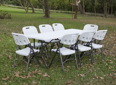 MESA PLEGABLE A LA MITAD Y 8 SILLAS ROBUSTAS